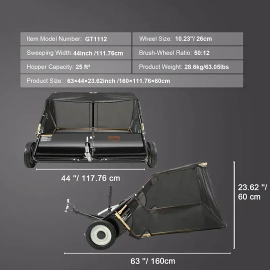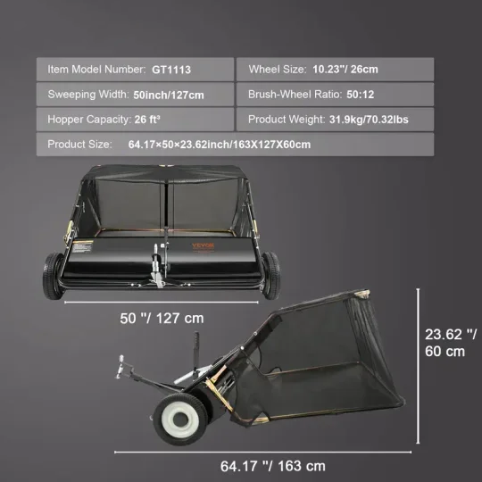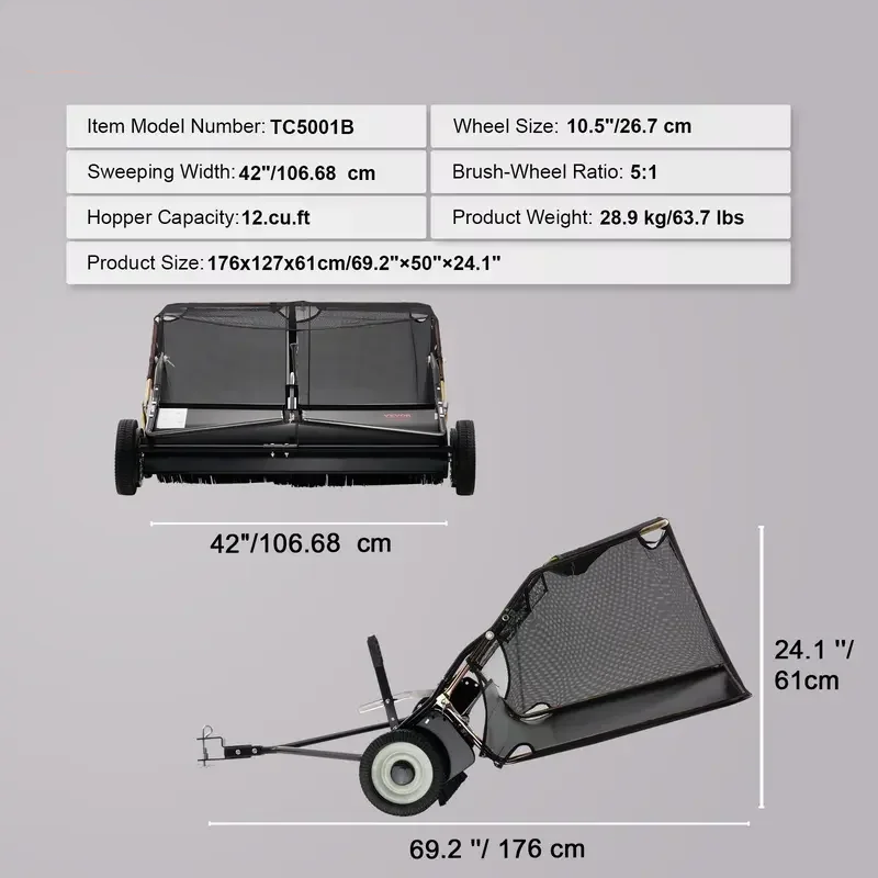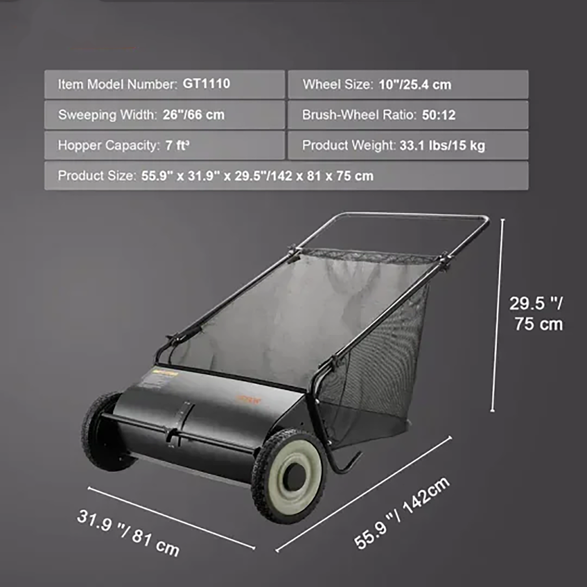 With a large non-woven hopper bag, you can collect more grass, leaves, and debris at once without frequent dumping. The bag can be easily installed or removed from the yard sweeper.